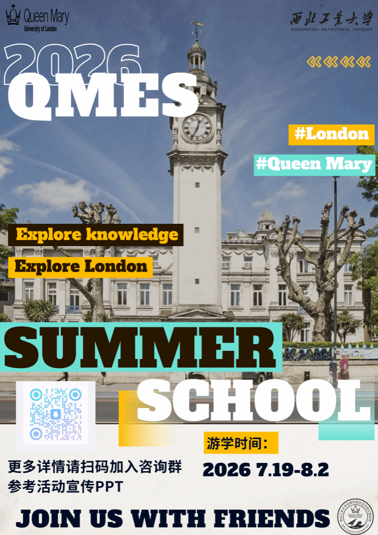 QMES伦敦玛丽女王大学暑期学校将于2026年7月19日-8月2日举行,主要面向学院大一、大二学生。